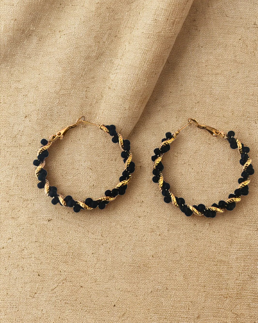 Boucles d’oreilles créoles noires et dorées – Acier inoxydable tendance