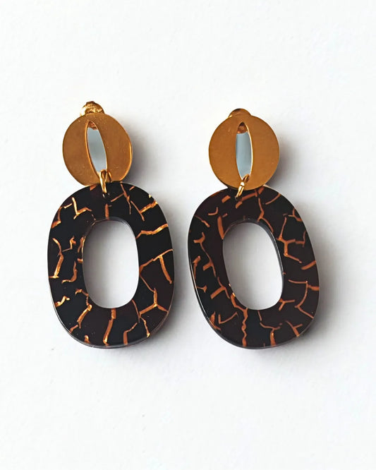 Boucles d’oreilles noires et dorées – Élégance graphique & modernité