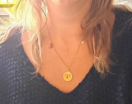 Collier personnalisable – Médaillon gravé, pierre naturelle & initiale