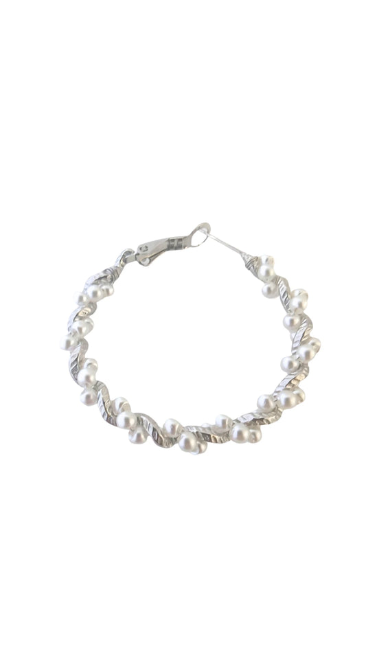 Boucles d’oreilles créoles perles blanches – Acier inoxydable argenté