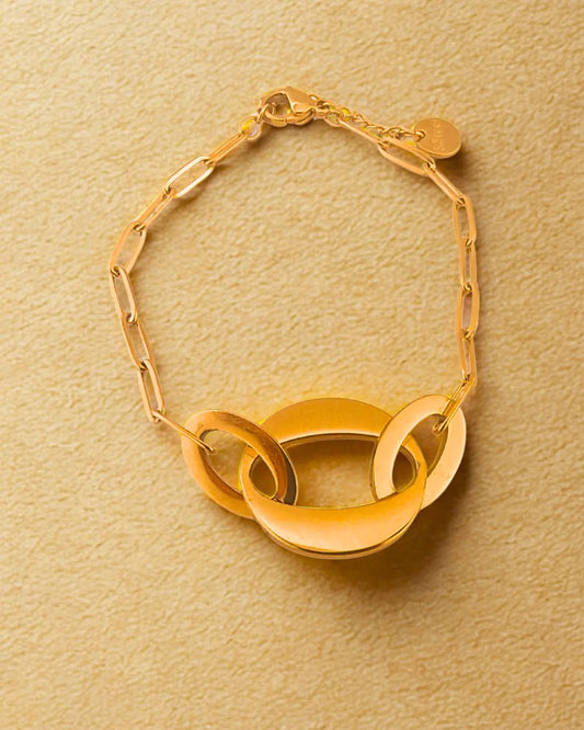 Bracelet maillons et anneaux entrelacés en acier inoxydable doré – Bijou tendance et élégant