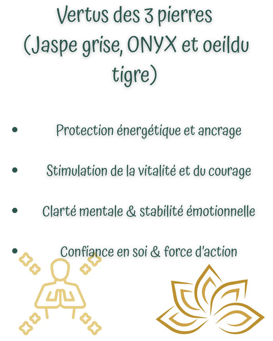 Bracelet 3 vertus (ONYX, OEIL DE TIGRE, JASPE Grise)