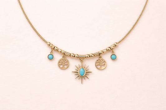 Collier doré soleil & turquoise